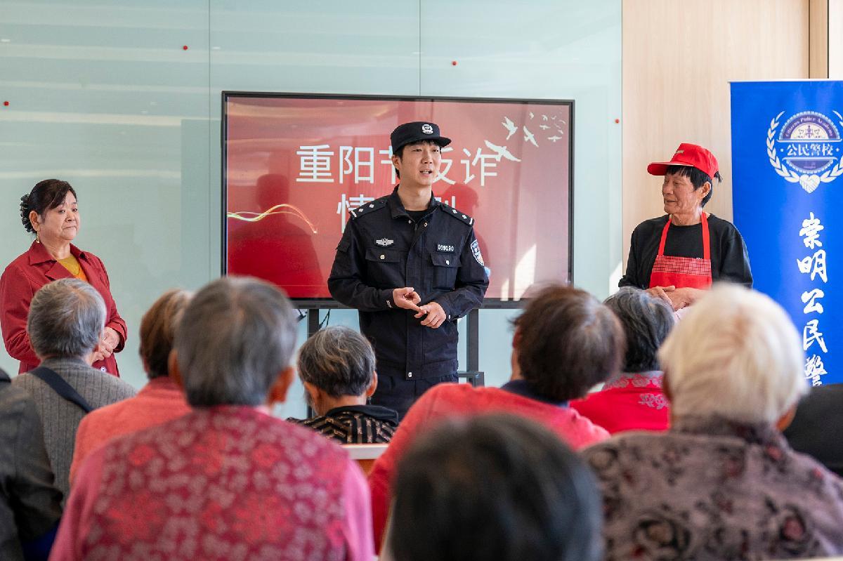 10月29日,上海市公安局崇明分局港西派出所組織民警來到轄區(qū)綜合為老服務(wù)中心,開展重陽節(jié)慰問和反詐宣傳。
