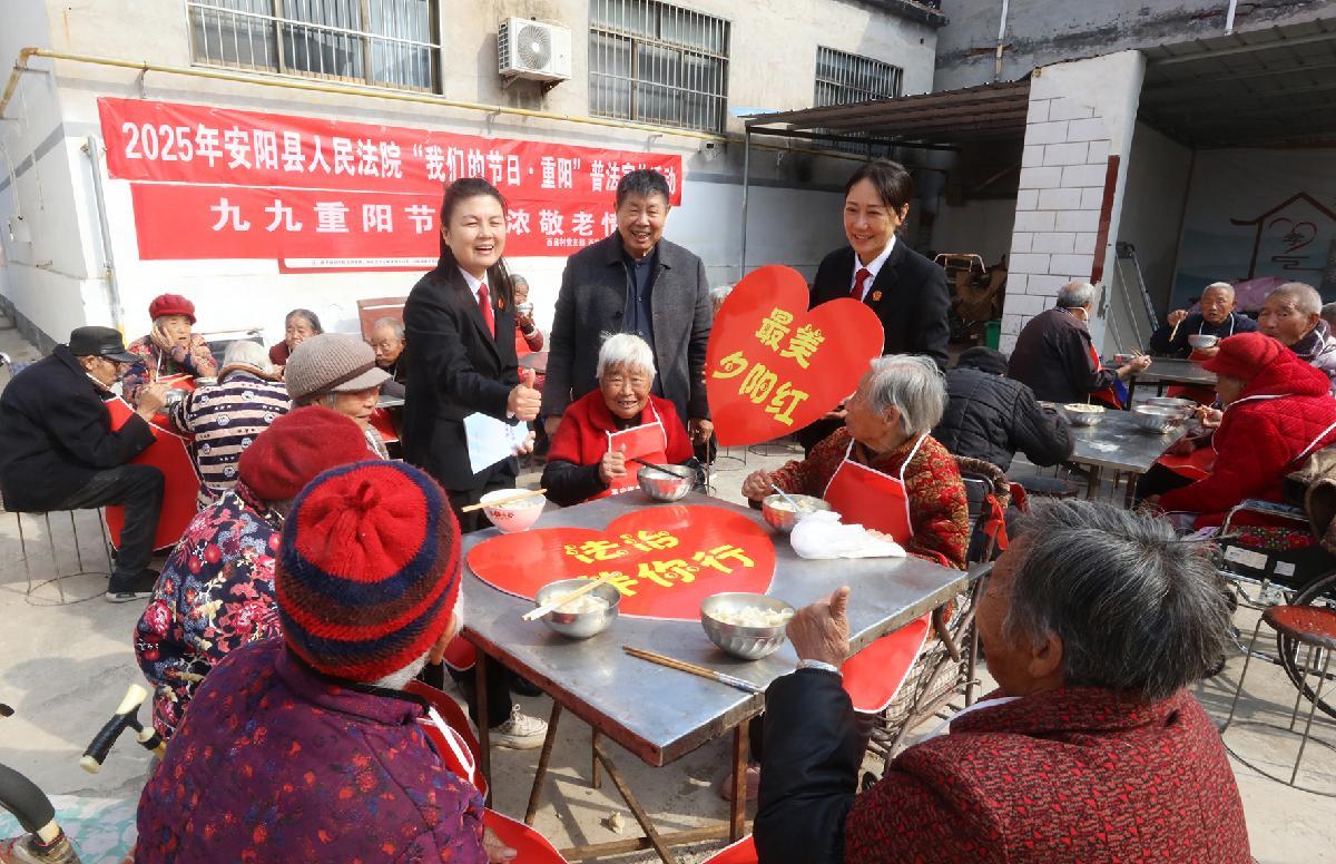 10月29日,河南省安陽縣人民法院組織干警深入轄區(qū)呂村鎮(zhèn)西呂村開展“我們的節(jié)日·重陽”普法宣傳。