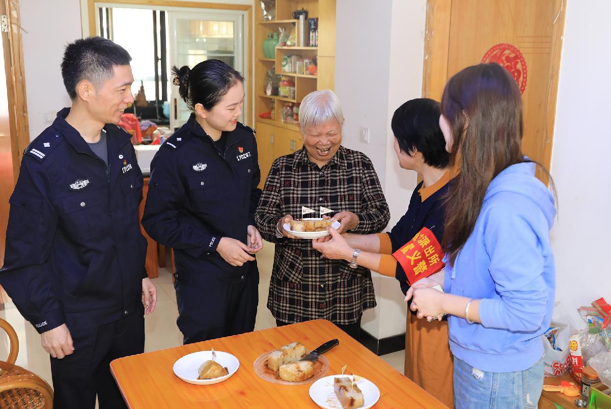 10月28日,浙江省臺(tái)州市公安局黃巖分局民警、義警攜手社區(qū)工作人員走進(jìn)轄區(qū)獨(dú)居老人家中,送上重陽糕及老年人防詐手冊(cè)。