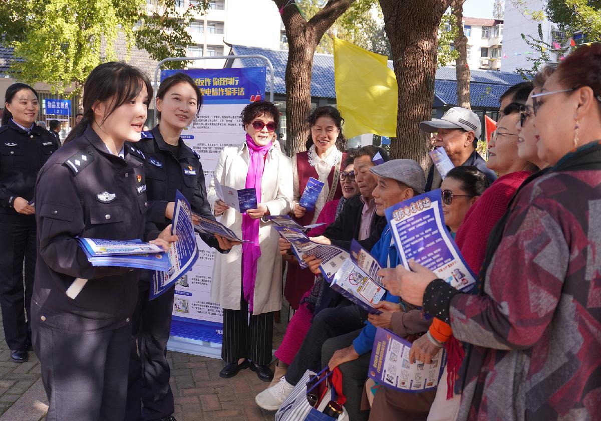 10月28日,甘肅省蘭州市公安局安寧分局劉家堡派出所民輔警走進(jìn)蘭州市植物園,結(jié)合近期高發(fā)的電詐案例向中老年群眾講解防詐技巧。