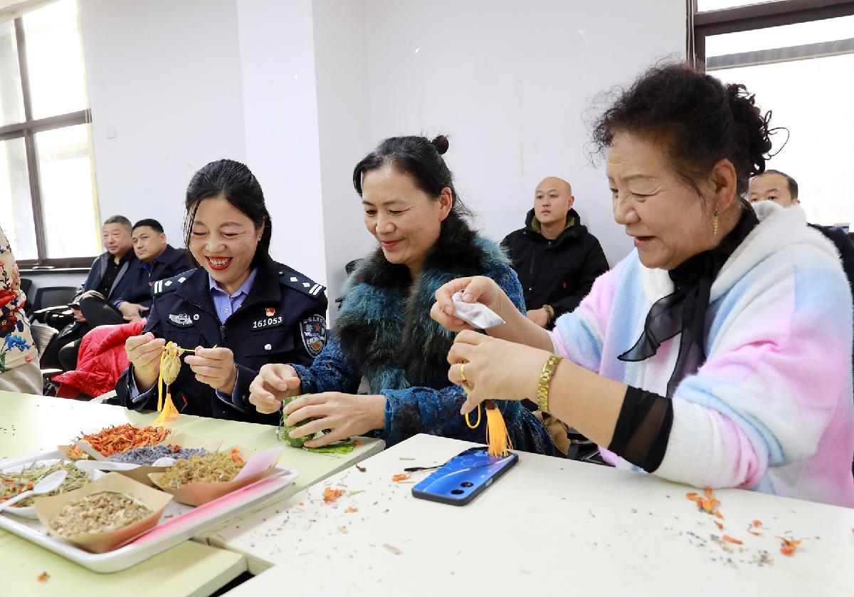 10月29日,山東省煙臺(tái)市公安局組織民警來到萊山區(qū)迎春佳苑社區(qū),與社區(qū)老人一起制作香囊,開展反詐、交通等安全防范知識(shí)宣傳。