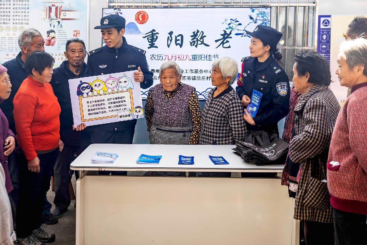 10月29日,浙江省武義縣公安局新宅派出所來到轄區(qū)南塘頭村,開展走訪助老活動(dòng),并向老人進(jìn)行防范養(yǎng)老詐騙知識(shí)宣傳。