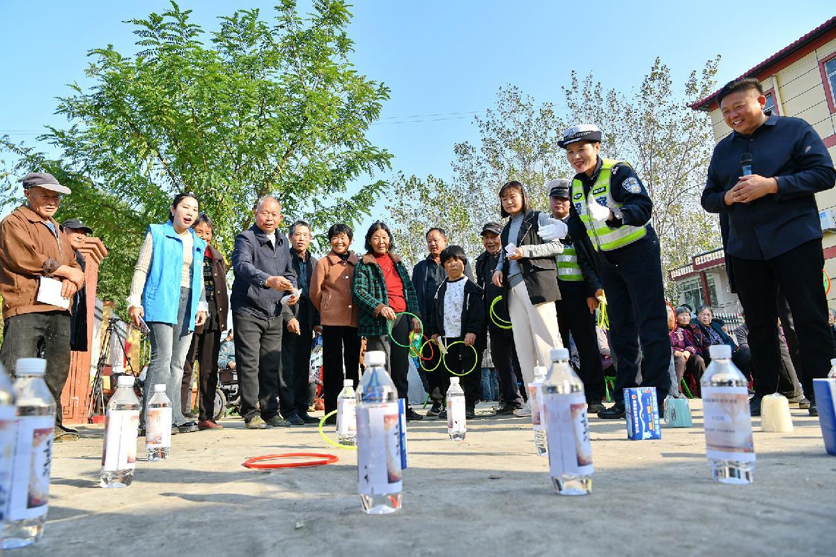 10月28日,安徽省阜南縣公安局交管大隊(duì)民警輔警走進(jìn)黃崗鎮(zhèn)耿寨村開展“重陽節(jié)送交通安全知識(shí)”活動(dòng)。