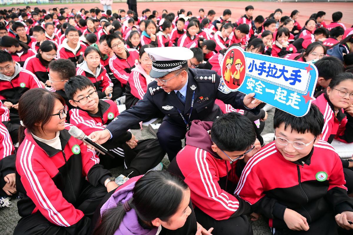 10月29日,安徽省固鎮(zhèn)縣公安局交管大隊民警在實驗中學為學生上交通安全課。