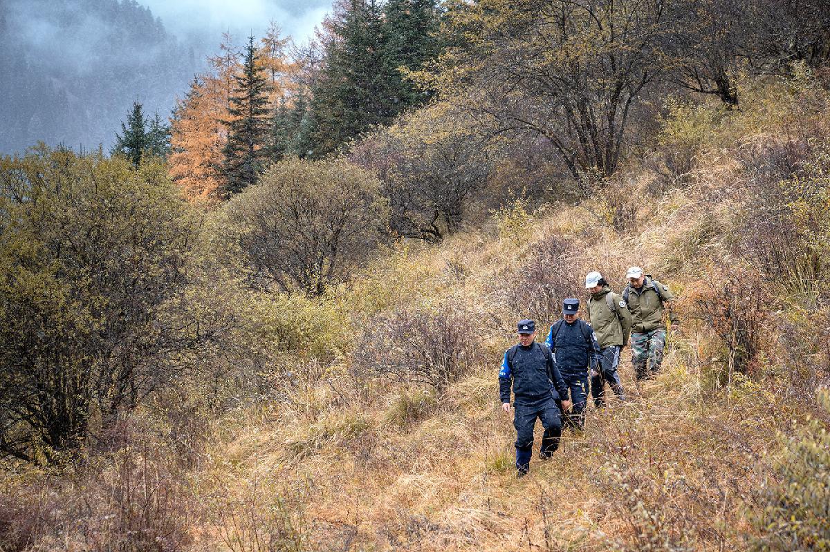 10月31日,四川省平武縣公安局白馬派出所民警聯(lián)合護(hù)林員在大熊貓國(guó)家公園王朗片區(qū)進(jìn)行巡邏。