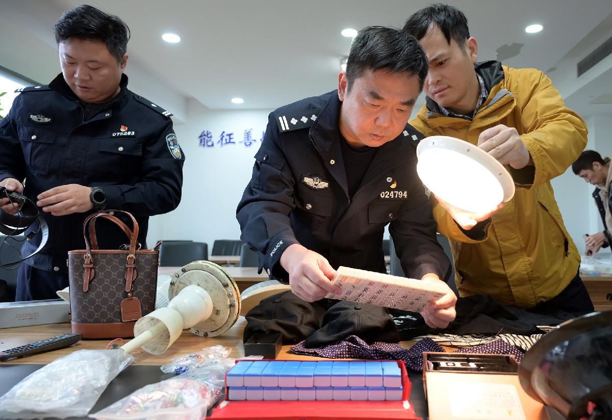 圖為11月4日,刑偵大隊民警清點詐賭工具。