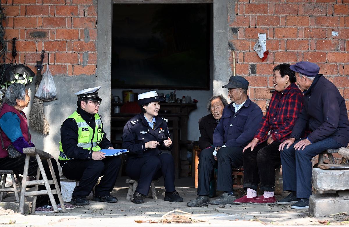 圖為11月5日,民輔警在石橋鎮(zhèn)為老年群體開展交通安全宣傳。