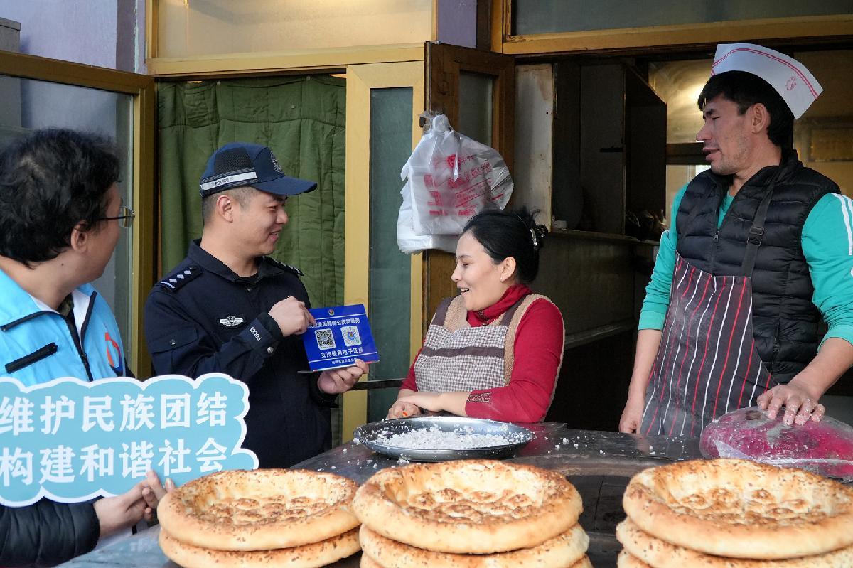 11月9日,新疆維吾爾自治區(qū)克拉瑪依市公安局白堿灘區(qū)分局中興路街道派出所北盛社區(qū)警務(wù)室民警聯(lián)合社區(qū)工作人員深入轄區(qū)開展普法宣傳,指導(dǎo)居民關(guān)注使用“新疆公安微警務(wù)”,筑牢社區(qū)安全防線。