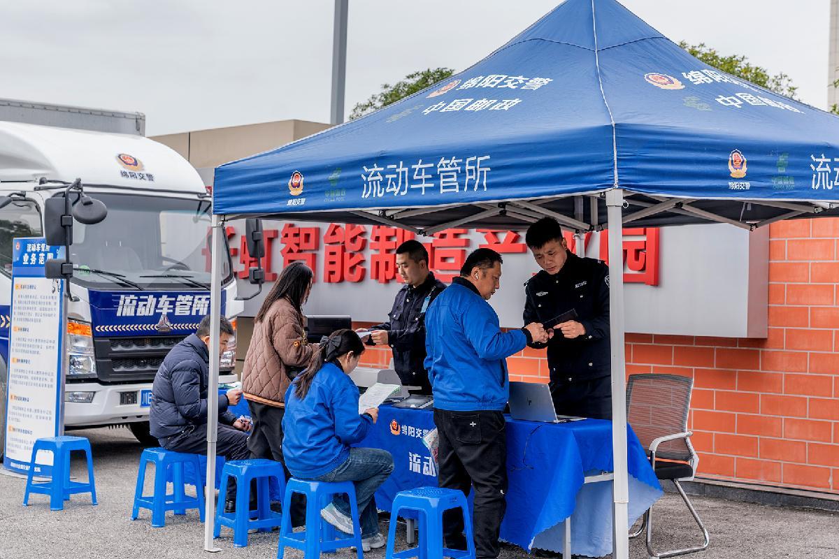 11月18日,四川省綿陽市公安局交通警察支隊將“流動車管所”搬進綿陽市高新區(qū)產(chǎn)業(yè)園,為企業(yè)員工帶來廠門口的車駕管服務(wù)。