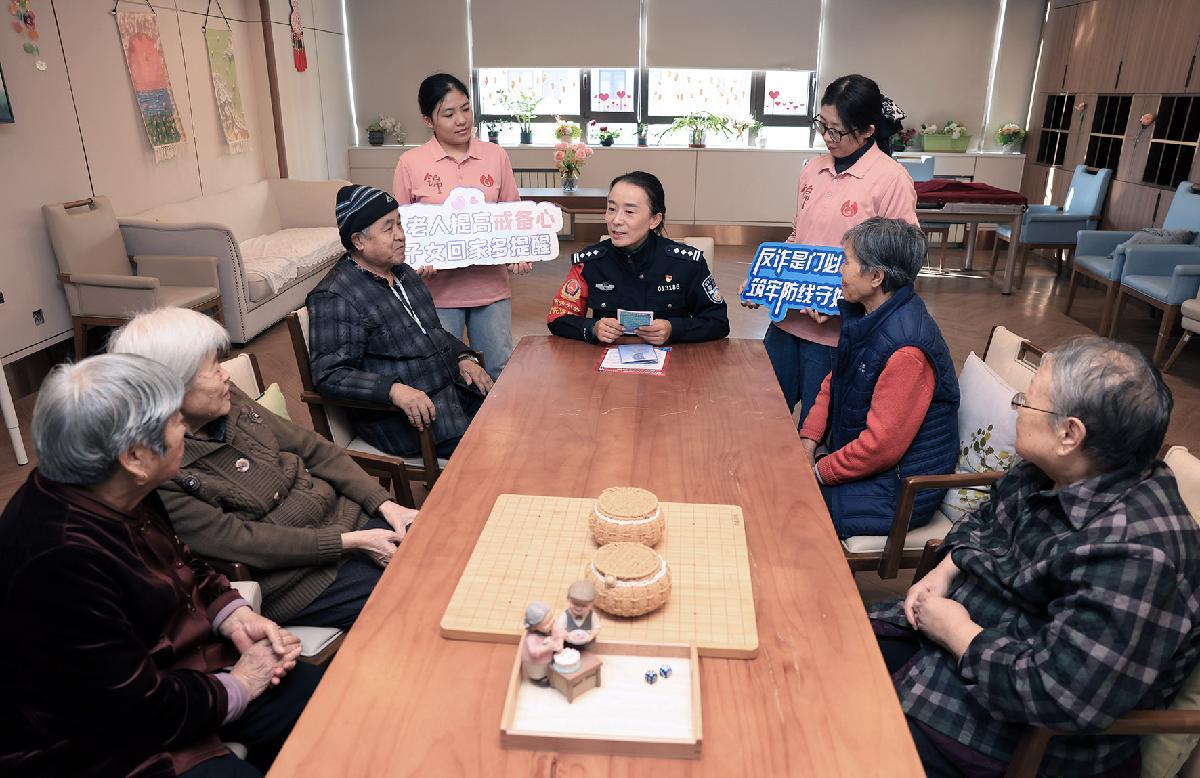 11月18日,山東省濟南市公安局市中分局刑事偵查大隊與七賢派出所民警來到轄區(qū)一家老年公寓開設“反詐課堂”,通過案例宣講等形式向老年人開展反詐宣傳。