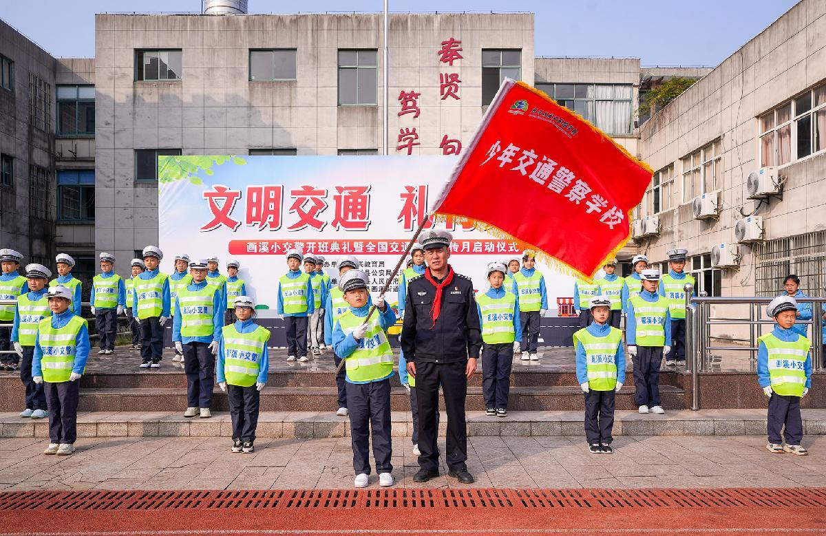 12月1日,浙江省長(zhǎng)興縣公安局交管大隊(duì)攜手畫溪街道包橋中心小學(xué)成立少年交通警察學(xué)校,并以“文明交通 禮行天下”為主題,舉行了莊重的授旗儀式。