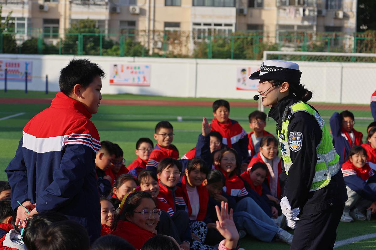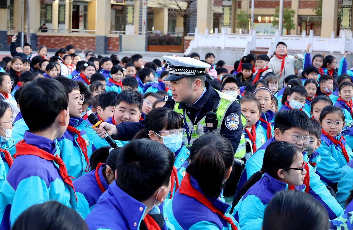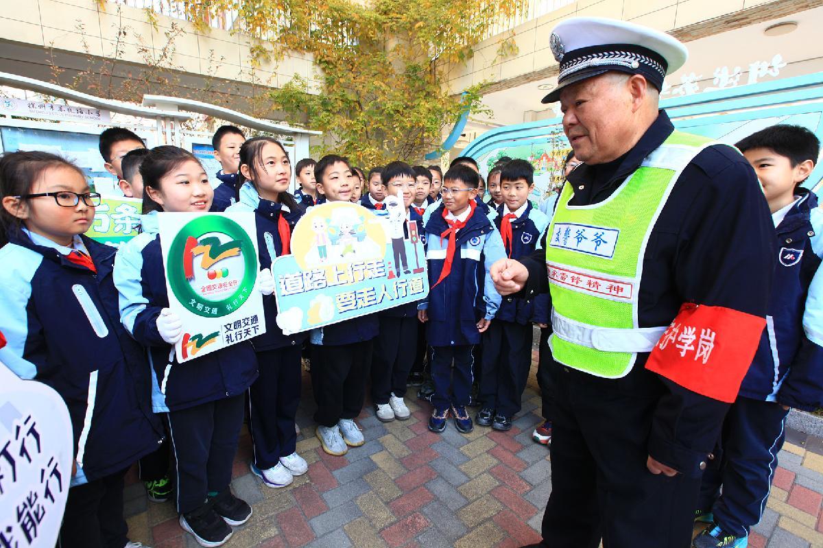 12月1日,江蘇省徐州市蘇堤路小學(xué)開展“文明交通伴‘童’行”主題活動(dòng),邀請(qǐng)被同學(xué)們親切地稱為“交警爺爺”的退休警察陳孟軍來(lái)校講解交通安全知識(shí)。
