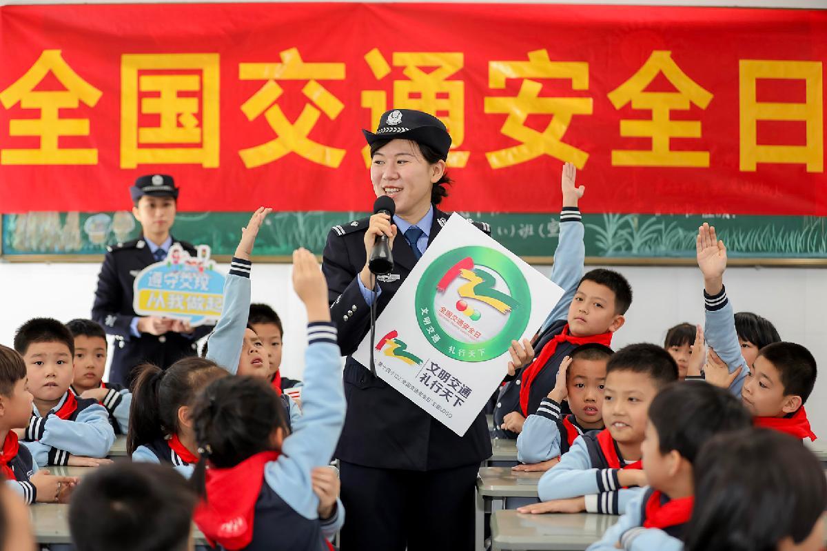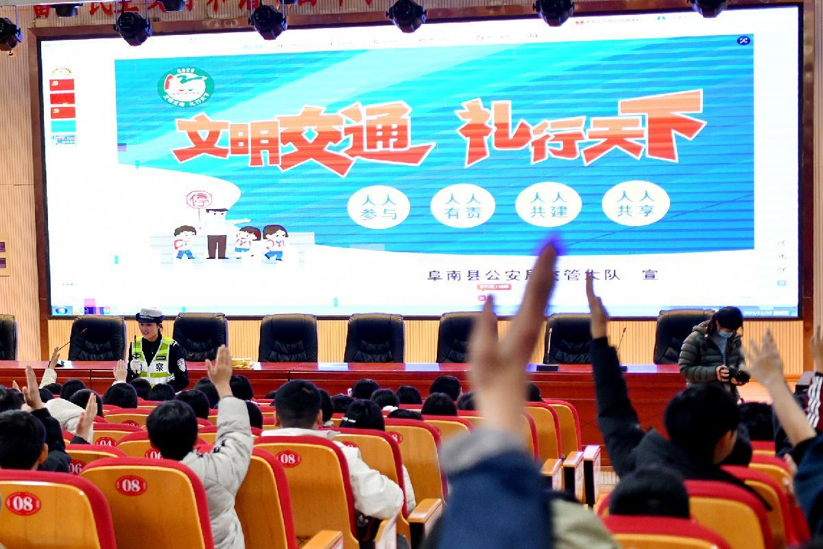 11月28日,在第十四個(gè)“全國(guó)交通安全日”來(lái)臨之際,安徽省阜南縣公安局交管大隊(duì)組織民警輔警走進(jìn)轄區(qū)中心學(xué)校開展“文明交通 禮行天下”主題宣傳。