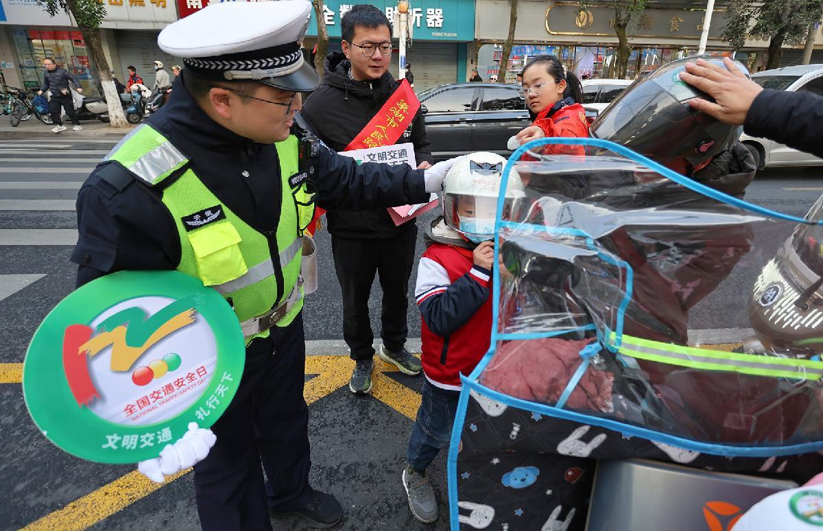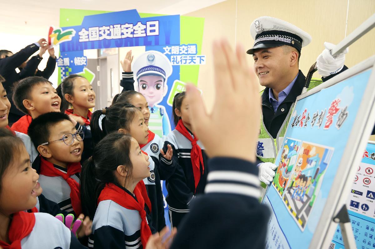 12月1日,第十四個(gè)“全國(guó)交通安全日”來(lái)臨之際,福建省福州市公安局鼓樓分局洪山派出所聯(lián)合鼓樓交警大隊(duì)民警走進(jìn)茶園山中心小學(xué),開展交通安全知識(shí)宣傳。