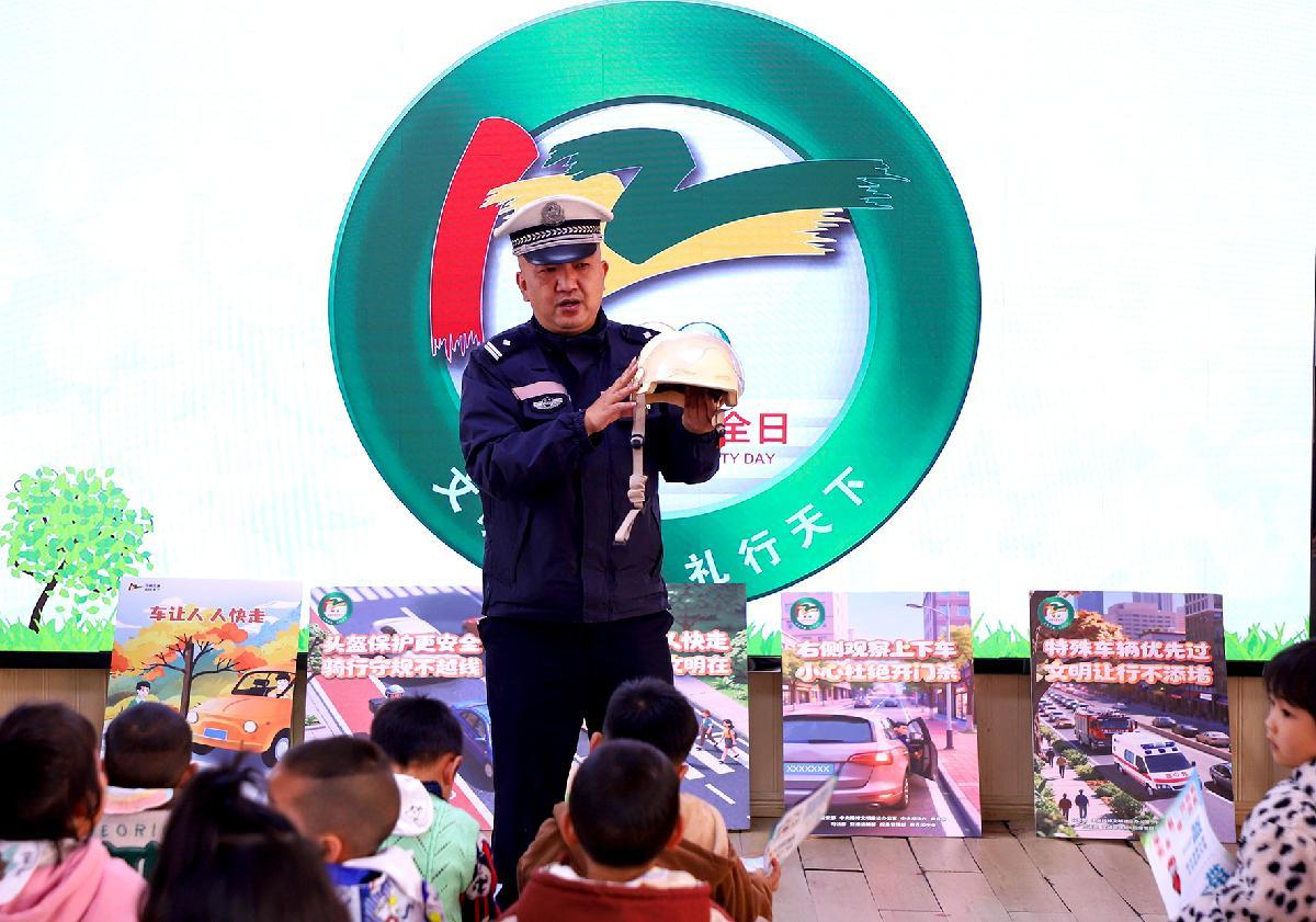 12月1日,貴州省丹寨縣公安局交通警察大隊(duì)民警走進(jìn)轄區(qū)第二幼兒園開展“文明交通 禮行天下”交通安全宣傳。