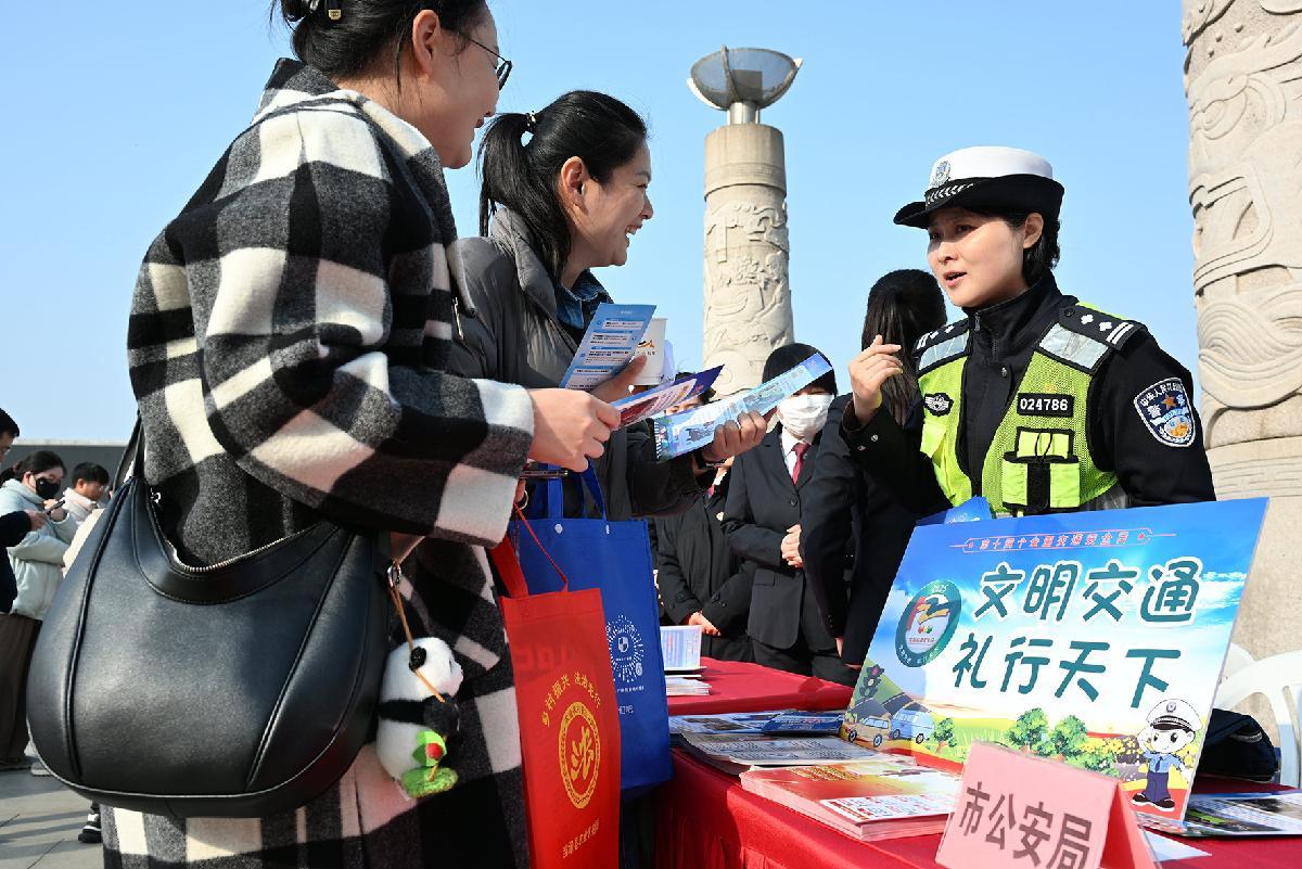 12月1日,江西省九江市公安局交管支隊(duì)在南山公園中心廣場(chǎng)開展“文明交通 禮行天下”主題宣傳。