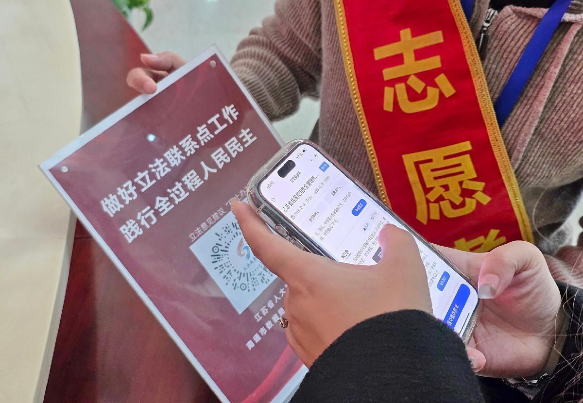 12月3日,在江蘇省南通市政務(wù)服務(wù)中心大廳,前來辦事的市民通過掃描“立法我參與”二維碼,對(duì)正在征求意見的《江蘇省房屋使用安全管理?xiàng)l例(草案)》提出修改完善建議。