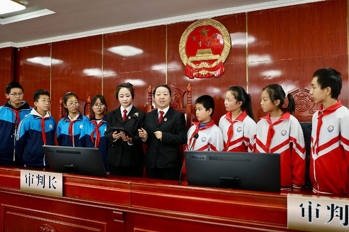 12月4日,青海省西寧市湟源縣東峽鄉(xiāng)中心學(xué)校、大華鎮(zhèn)池漢學(xué)校學(xué)生走進(jìn)縣人民法院“小禾大夢(mèng)”未成年人法治教育基地,沉浸式學(xué)習(xí)法律知識(shí)。