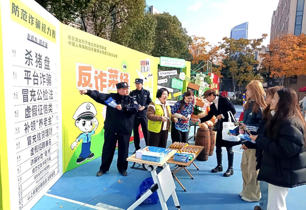 12月5日,浙江省臺州市公安局椒江分局府前派出所民警來到臺州開放大學,通過專門制作的“防詐視力表”為老年大學學員、在校大學生講解防范電信網(wǎng)絡(luò)詐騙知識。