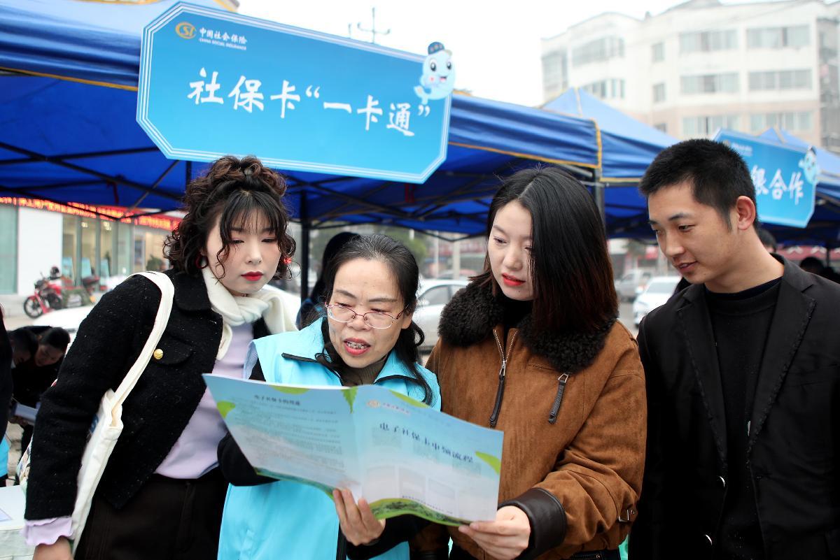 圖為工作人員為群眾講解社保卡“一卡通”操作流程。