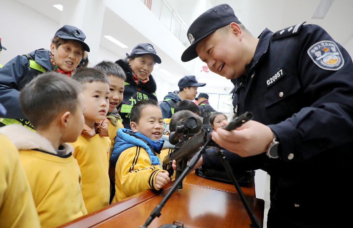 1月5日,江西省九江市公安局特巡警支隊(duì)潯陽大隊(duì)舉行警營開放日活動(dòng),邀請轄區(qū)小金星幼兒園50余名小朋友走進(jìn)警營,開展形式多樣的參觀互動(dòng)活動(dòng)。