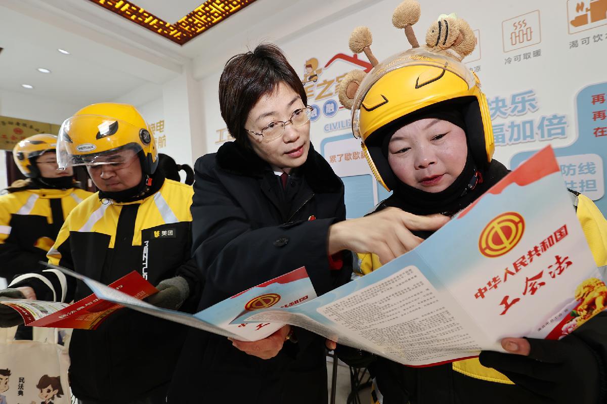 1月7日,安徽省淮北市總工會邀請淮北市人民檢察院檢察官走進工會驛站,結合勞動爭議解決、勞動權益保障、法律援助等問題,向快遞外賣員等新就業(yè)群體宣傳工會法。