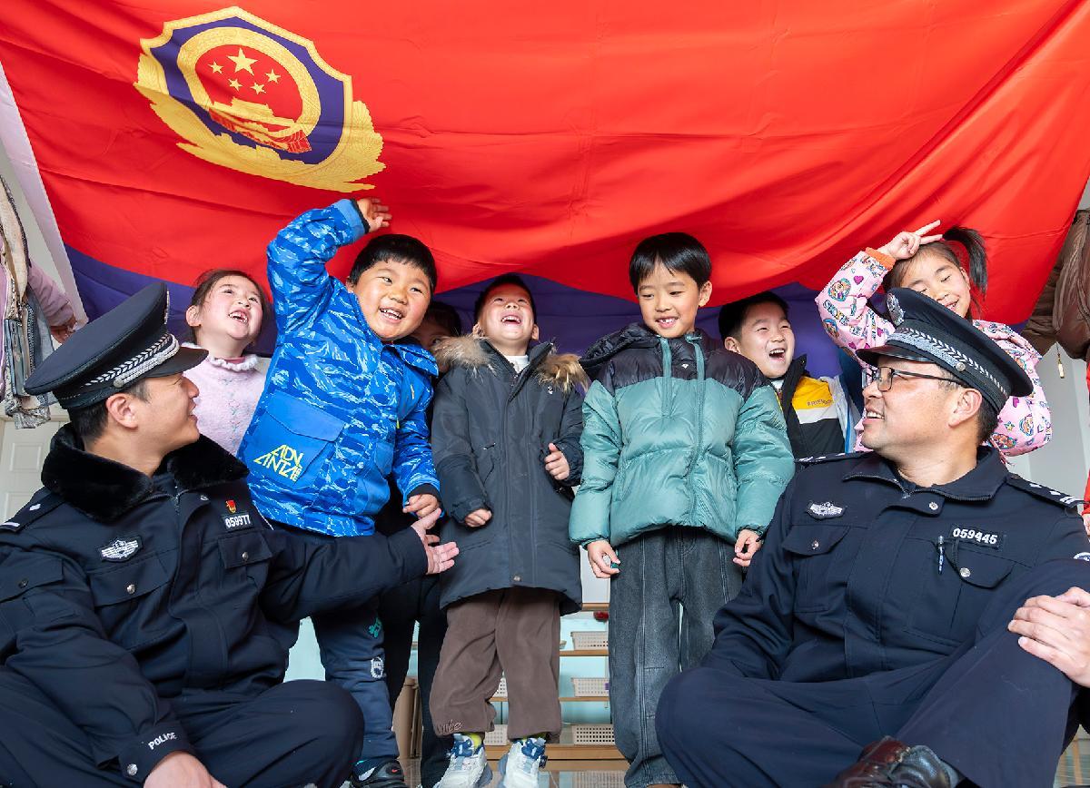 1月7日,在第六個中國人民警察節(jié)到來之際,上海市公安局崇明分局豎新派出所民警走進轄區(qū)幼兒園舉行“警營開放日”活動。