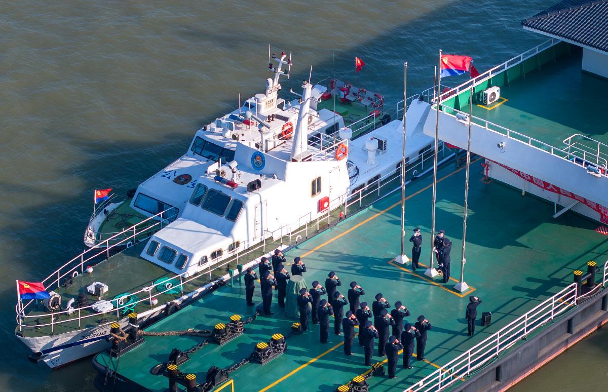 1月7日,浙江寧波出入境邊防檢查站出動執(zhí)法船艇開展“喜迎警察節(jié) 踏浪守國門”主題巡航行動。