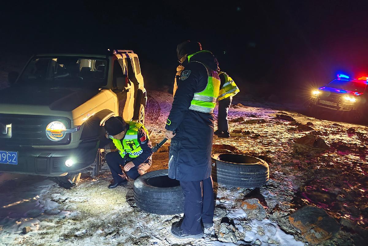 1月12日22時(shí)45分,新疆喀什科克牙爾邊境派出所接到110指派,稱一輛游客車輛在慕士塔格冰川公園附近迷失方向、輪胎爆胎被困。民警迅速趕往現(xiàn)場(chǎng)救援,歷經(jīng)3個(gè)小時(shí),成功協(xié)助游客脫困。