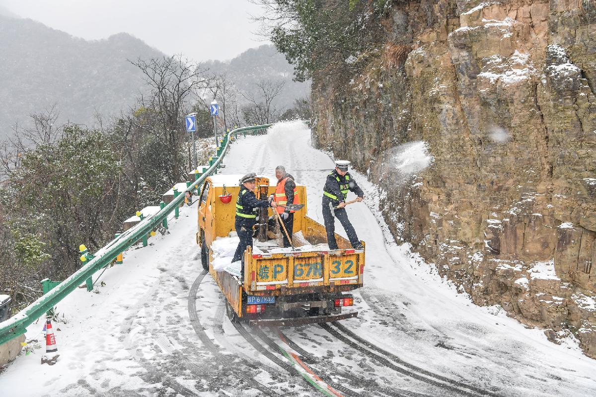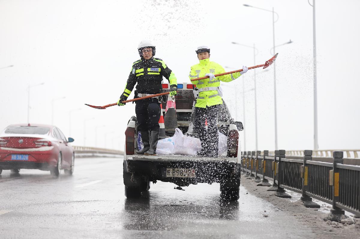 1月20日,安徽省巢湖市公安局交管大隊全警動員,全力應(yīng)對降雪、結(jié)冰天氣,加強路面交通安全管理,確保安全暢通。