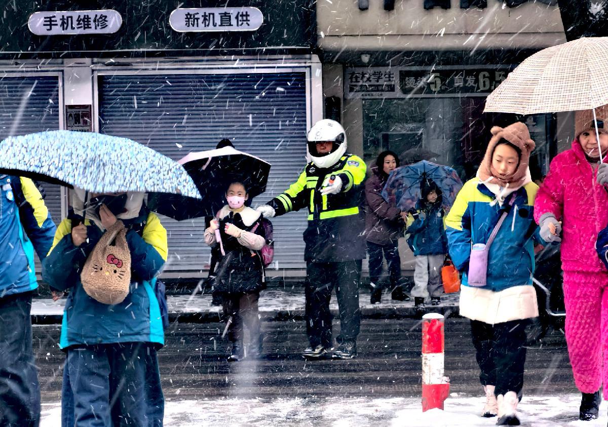 1月19日,山東省滕州市公安局交通管理大隊以雪為令,依托“護(hù)學(xué)崗”,為雪天出行的廣大師生保駕護(hù)航。