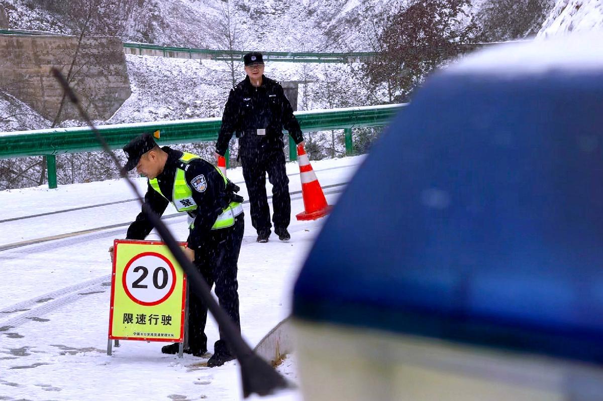 1月20日,安徽省涇縣出現(xiàn)降雪降溫天氣。涇縣公安局交管大隊組織警力加強S345省道巡邏疏導(dǎo),全力保障路面安全暢通。