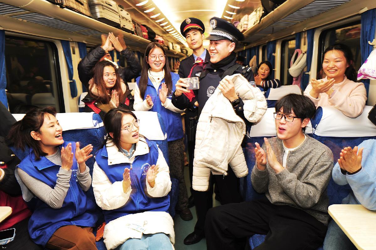 1月20日,正值學(xué)生寒假返程高峰。青藏鐵路公安局西寧公安處乘警支隊民警在值乘的Z264次(廣州白云—拉薩)列車上為返鄉(xiāng)學(xué)子宣講安全防范知識。