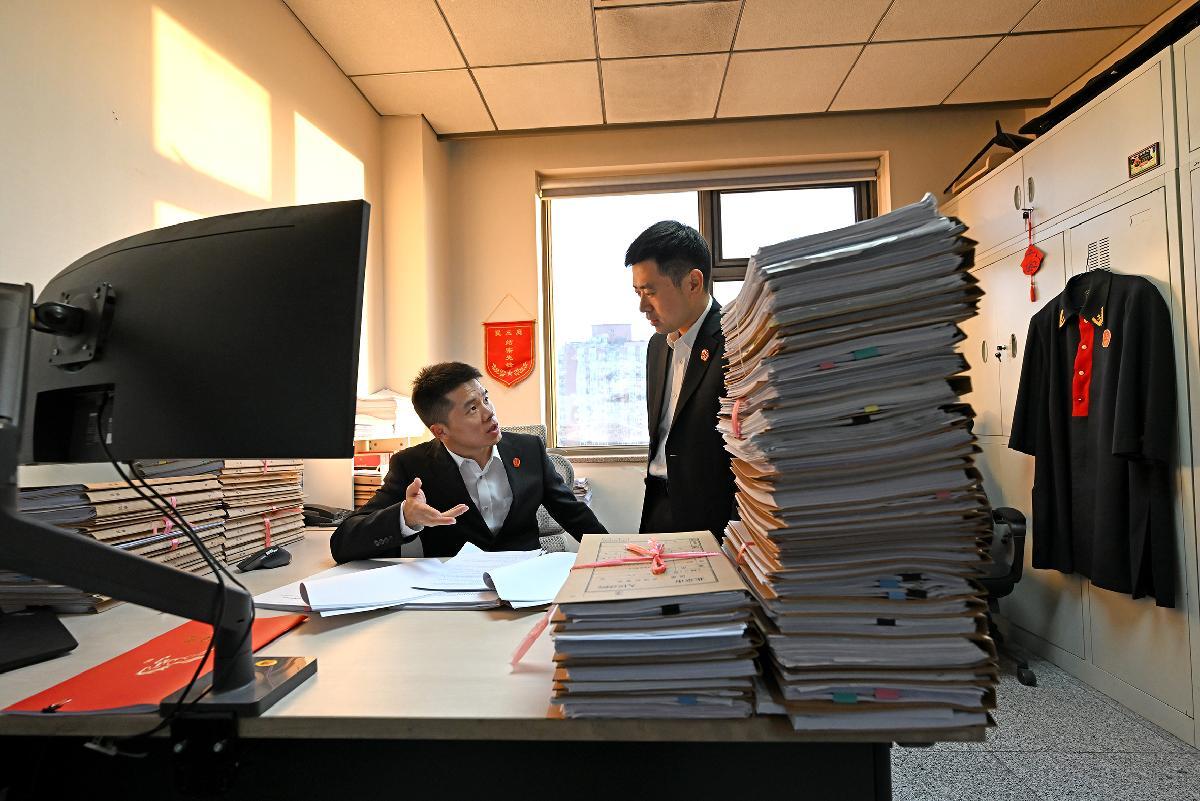 2025年12月23日,北京市朝陽區(qū)人民法院望京法庭法官助理劉柳把新收案件的卷宗材料及時(shí)分派給法官。