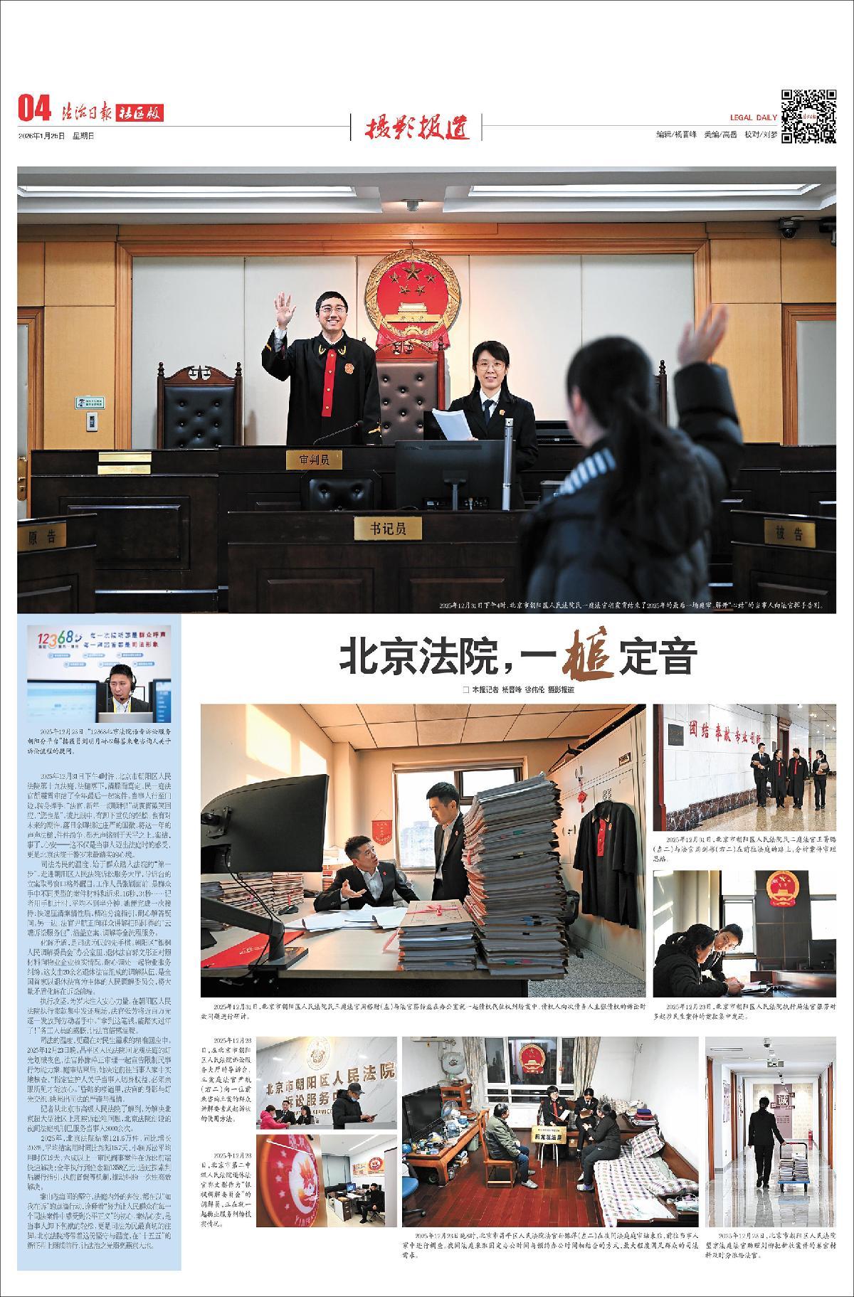 2025年,北京法院結(jié)案121.6萬件,同比增長20.3%,平均結(jié)案用時(shí)同比縮短15.7天,小額訴訟平均用時(shí)僅19天;六成以上一審民商事案件在訴訟前端快速解決;全年執(zhí)行到位金額1358億元;通過探索判后履行指引、執(zhí)前督促等機(jī)制,推動(dòng)糾紛一次性高效解決。