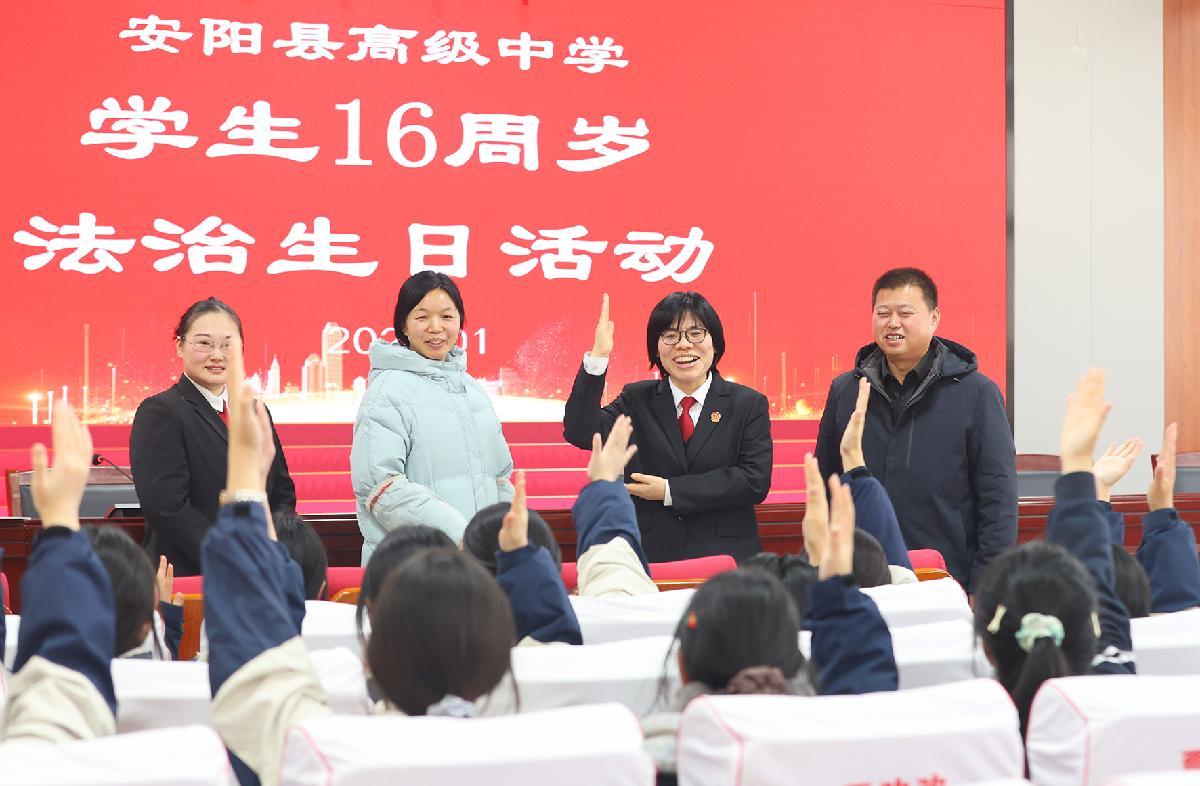 1月23日上午,河南省安陽縣人民法院組織干警走進(jìn)安陽縣高級中學(xué)開展“16周歲‘法治生日’專題講座”普法宣傳。