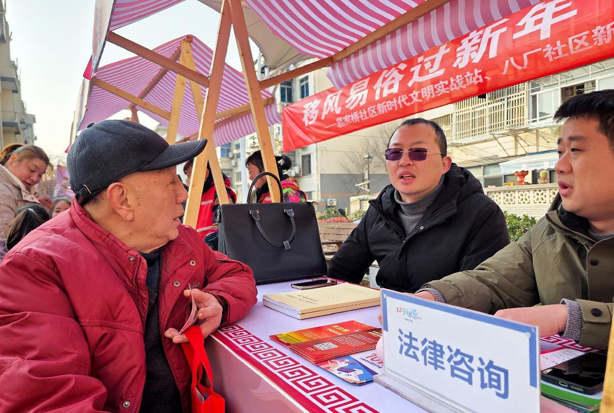1月23日,江蘇省南通市崇川區(qū)新城橋街道組織民警和律師走進(jìn)新春公益集市,為社區(qū)居民提供法律咨詢服務(wù)和反詐宣傳。