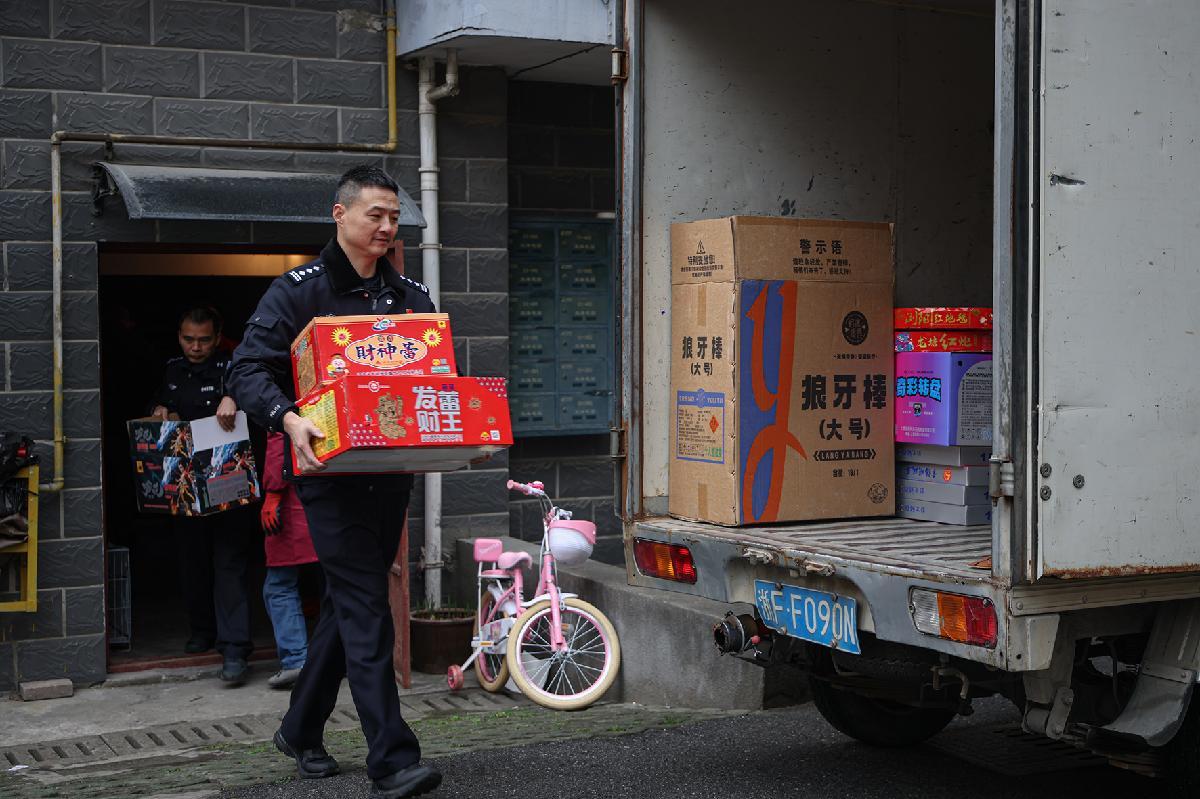 1月26日上午,浙江省嘉興市公安局南湖區(qū)分局大橋派出所緊扣“百日攻堅(jiān)”專(zhuān)項(xiàng)行動(dòng)部署,聯(lián)合應(yīng)急管理部門(mén)在轄區(qū)一居民車(chē)庫(kù)內(nèi)成功查獲非法存放售賣(mài)的煙花爆竹 20 余箱,共計(jì) 180 公斤。