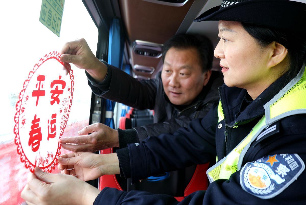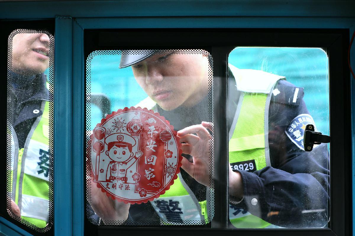 2月2日,2026年春運(yùn)首日。安徽省舒城縣公安局交管大隊民警深入轄區(qū)客運(yùn)場站為車輛駕駛?cè)诉M(jìn)行春運(yùn)安全提醒、張貼“平安春運(yùn)”,全力筑牢春運(yùn)道路交通安全防線。
