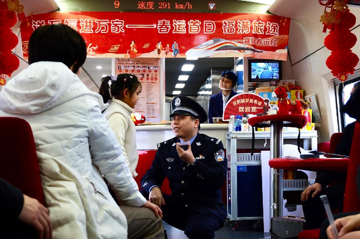 2月2日,襄陽鐵路公安處乘警支隊攜手襄陽客運(yùn)段,在G6807次列車上開展春運(yùn)首日安全宣傳。