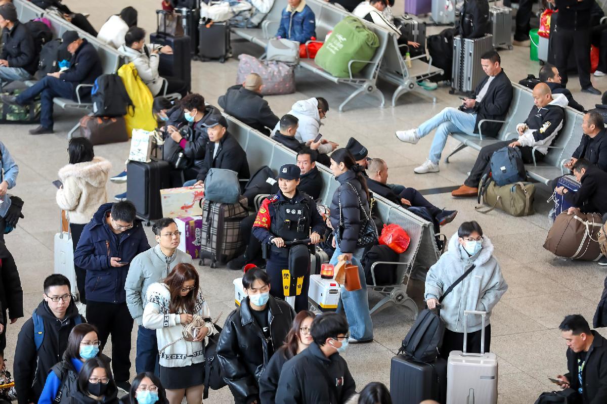 2月9日,福建省福州市晉安區(qū)的火車站候車大廳,福州鐵路公安處福州站派出所民警以“步巡+警用平衡車巡邏”方式,全力護航春運旅客出行平安。