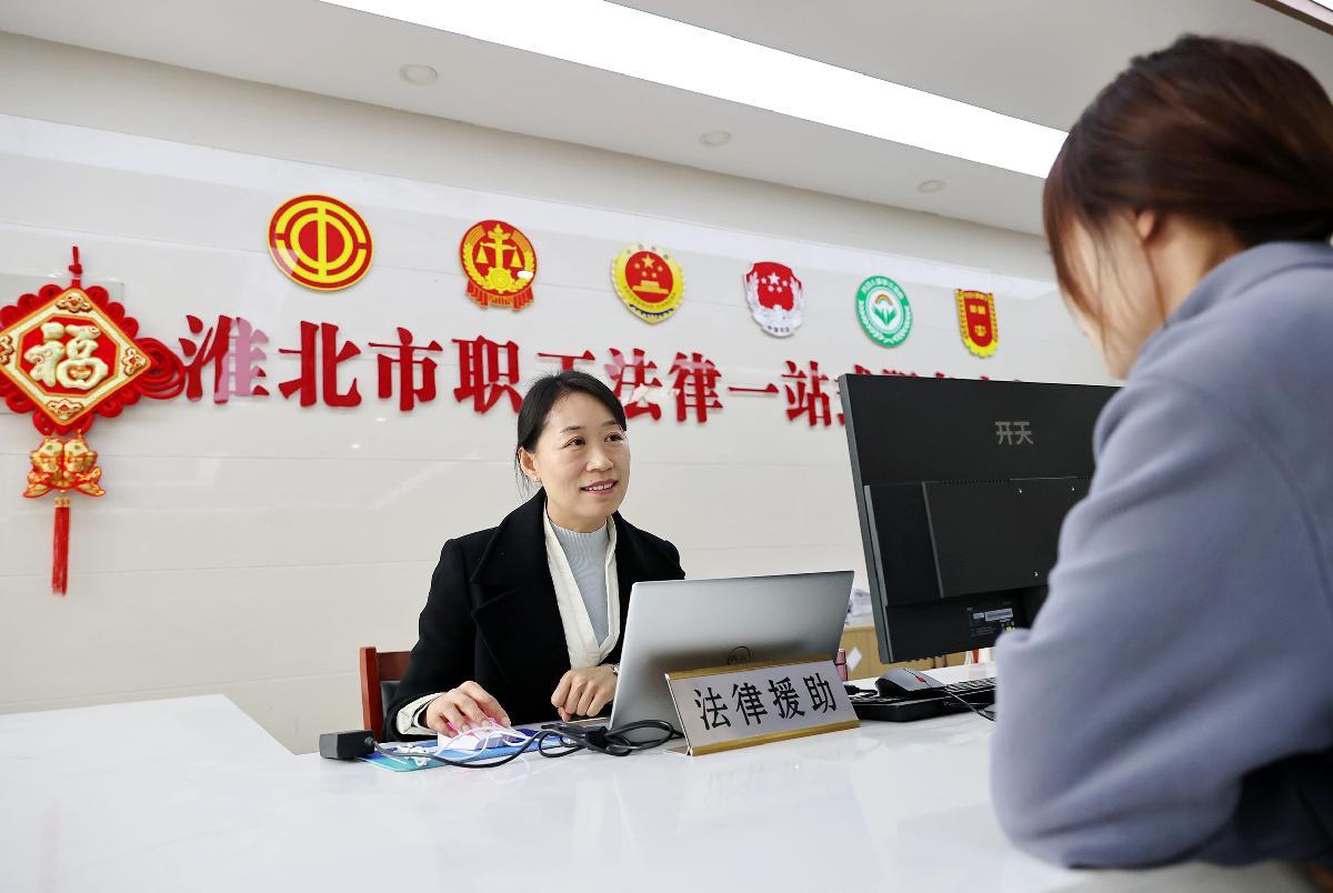 圖為2月25日,在淮北市職工服務(wù)中心,淮北市職工法律援助團(tuán)律師為來訪職工提供法律服務(wù)。