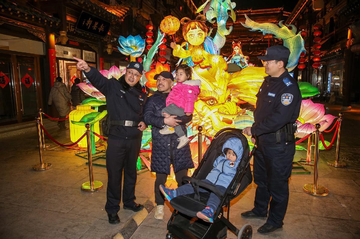 2月25日,山東省濟(jì)南市公安局市中分局大觀園派出所民警在大觀園迎春燈會現(xiàn)場執(zhí)勤巡邏,排查安全隱患,為游客提供服務(wù),確保市民度過一個(gè)平安喜樂的元宵佳節(jié)。