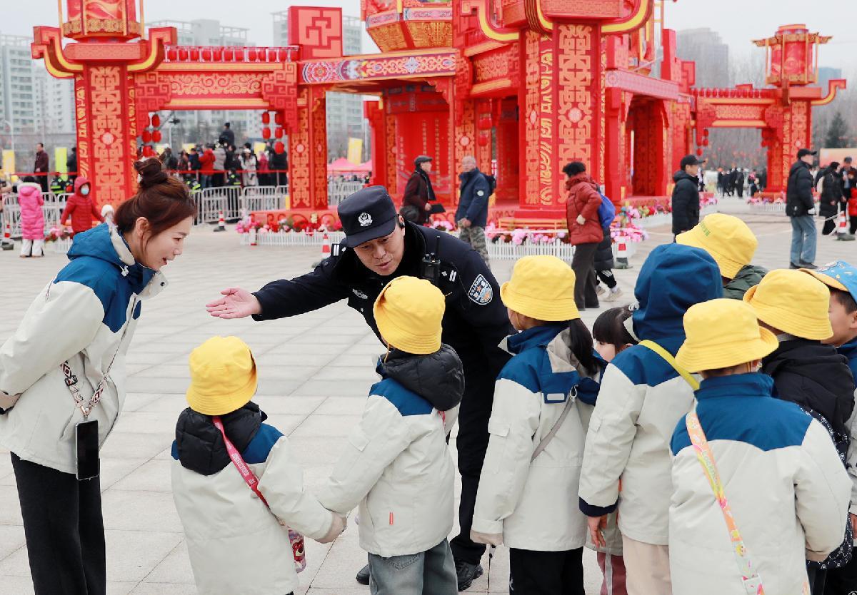2月26日,山東省煙臺市公安局萊山分局民輔警在慶新春民間秧歌展演暨非遺大集活動現(xiàn)場進(jìn)行服務(wù)保障工作。