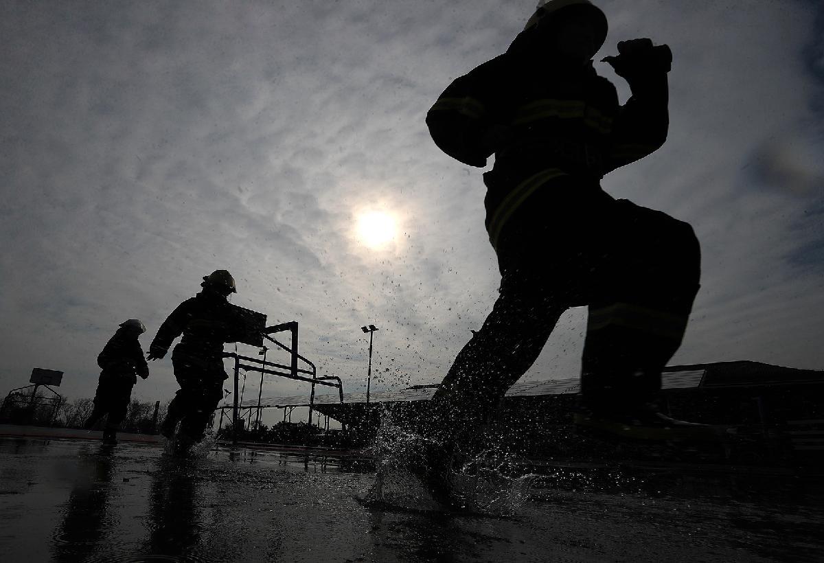隊(duì)員們進(jìn)行火場救援實(shí)戰(zhàn)訓(xùn)練。