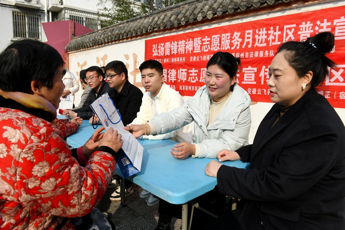 3月8日,安徽省宿州市司法局、埇橋區(qū)司法局精心組織一支由女律師為主的“弘揚(yáng)雷鋒精神 巾幗志愿服務(wù)”普法小分隊(duì),走進(jìn)社區(qū)開(kāi)展志愿服務(wù)。