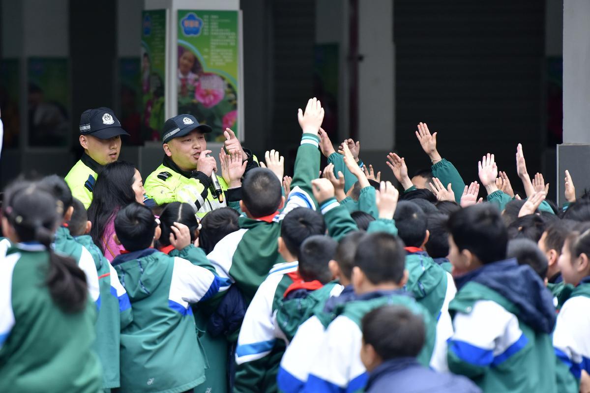 3月16日,四川省綿陽市公安局交通管理支隊(duì)直屬一大隊(duì)民輔警走進(jìn)轄區(qū)小學(xué),利用學(xué)校周一朝會(huì)時(shí)間開展“法治進(jìn)校園”主題宣傳。