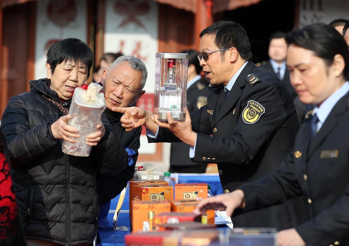圖為荊門(mén)市市場(chǎng)監(jiān)督管理局工作人員向群眾傳授實(shí)用“打假秘籍”。