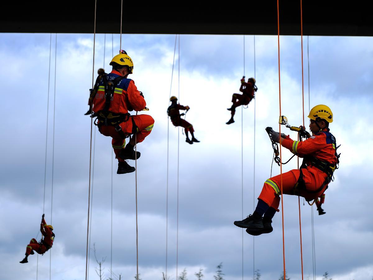 圖為新消防員進行繩索訓練。
