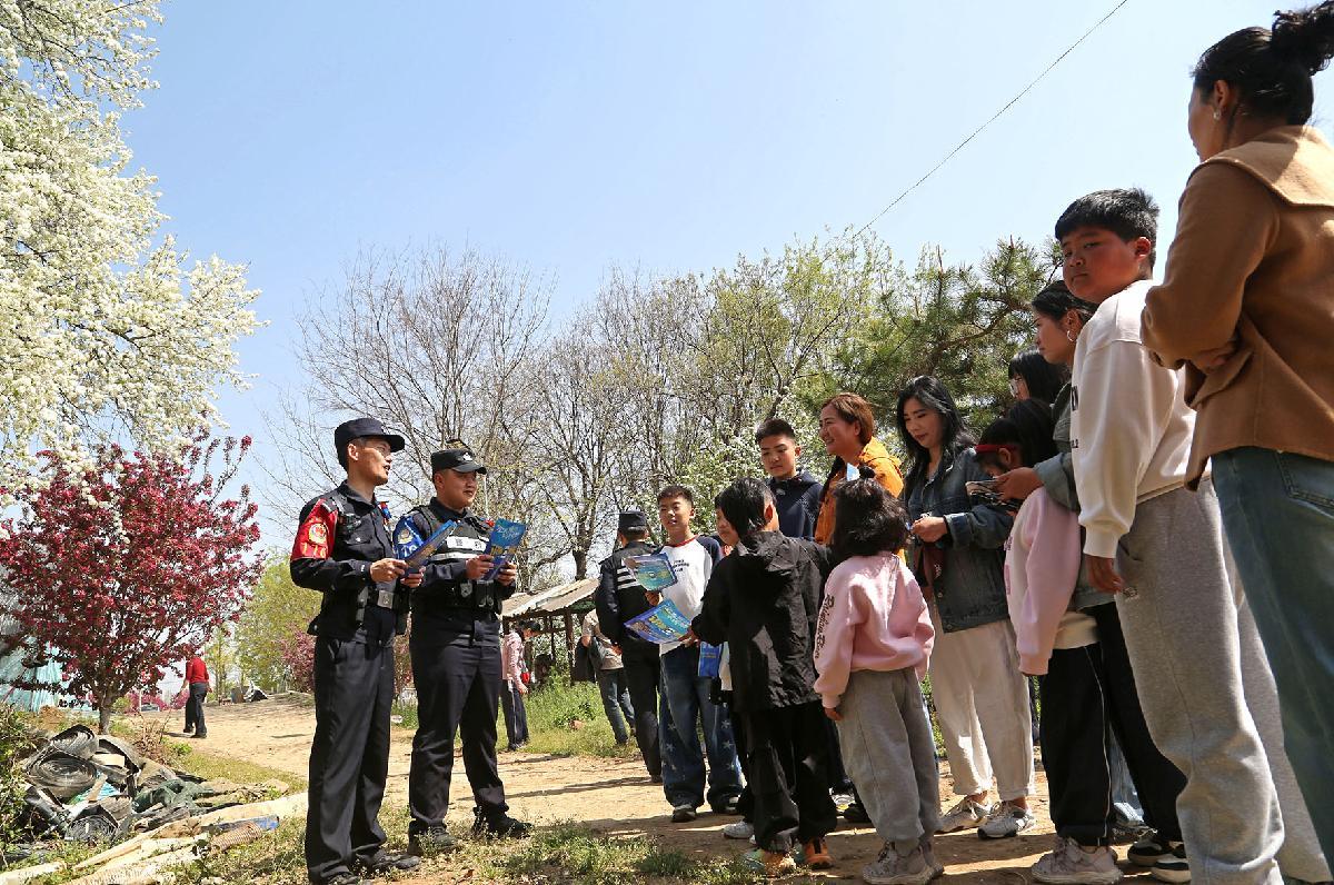 4月6日,山東省臨沂市郯城縣公安局港上派出所民警走進(jìn)中華繡球園,為往來游客送上“法治大餐”,以普法宣傳護(hù)航文明出游。